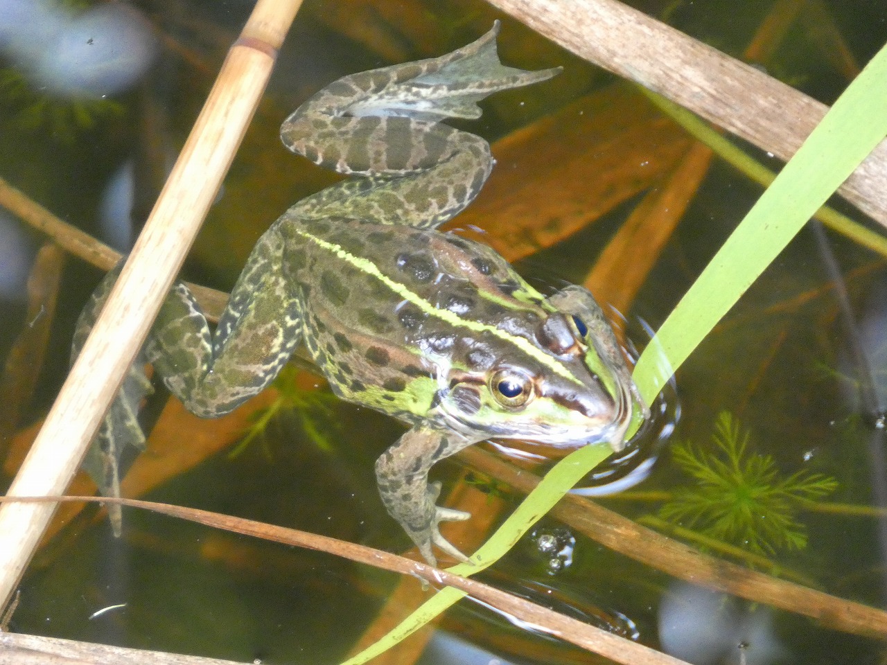 【トピックニュース記事87】~地域の両生類の特徴~ トピックニュース X Facebook はてブ Pocket LINE コピー 2025.08.17 天気:晴れ 気温26.0℃ 水温24.0℃ (午前9時) 令和7年8月15日(金)に新潟県妙高市の国立公園内の施設のビオトープ池に、トウキョウダルマガエルが出てきました。このトウキョウダルマガエルは17日にも現れ、池の水草の上に落ちてきたヒメギスをパクリと食べていました。餌場としての利用も始めた感じです。 佐藤直樹