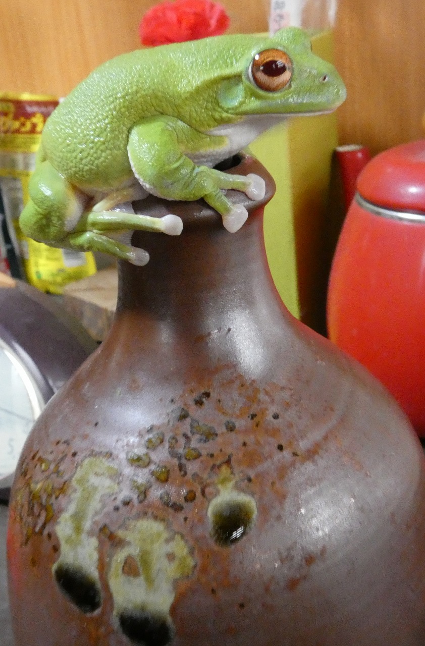 【トピックニュース記事92】~飼育個体の様子~ トピックニュース X Facebook はてブ Pocket LINE コピー 2025.12.03 天気:くもり 気温14.4℃ 、湿度83% (午前10時半) 令和7年12月3日(火)、水槽掃除中にモリアオガエル(アルビノ)を出していたら、花瓶の首のところで一休みしていました。これから大雪予報ですが、酷くならないことを願うばかりです。 佐藤直樹